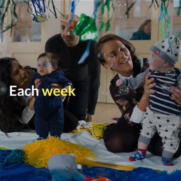 Baby Sensory provides ideas for creative play, massage, tummy time, movement, visual development, textures, scents and music in simple practical ways that can be easily repeated at home. We also use a combination of original and traditional songs and rhymes to develop early speech and language skills, and sensory signing activities to help you and your baby communicate from birth.